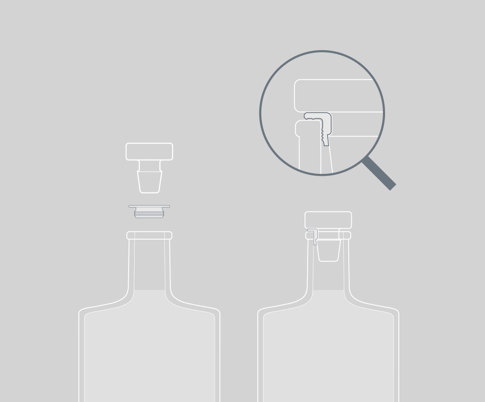 观云水晶玻璃瓶塞,来自水晶王国捷克,晶莹剔透,声如金石,闭合严密,只需单手握住瓶颈点赞动作轻推即可打开,这就是观云的“赞开”技术。